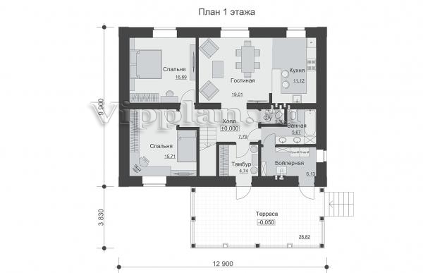 | Размеры дома: | 13.73м×12.9м |